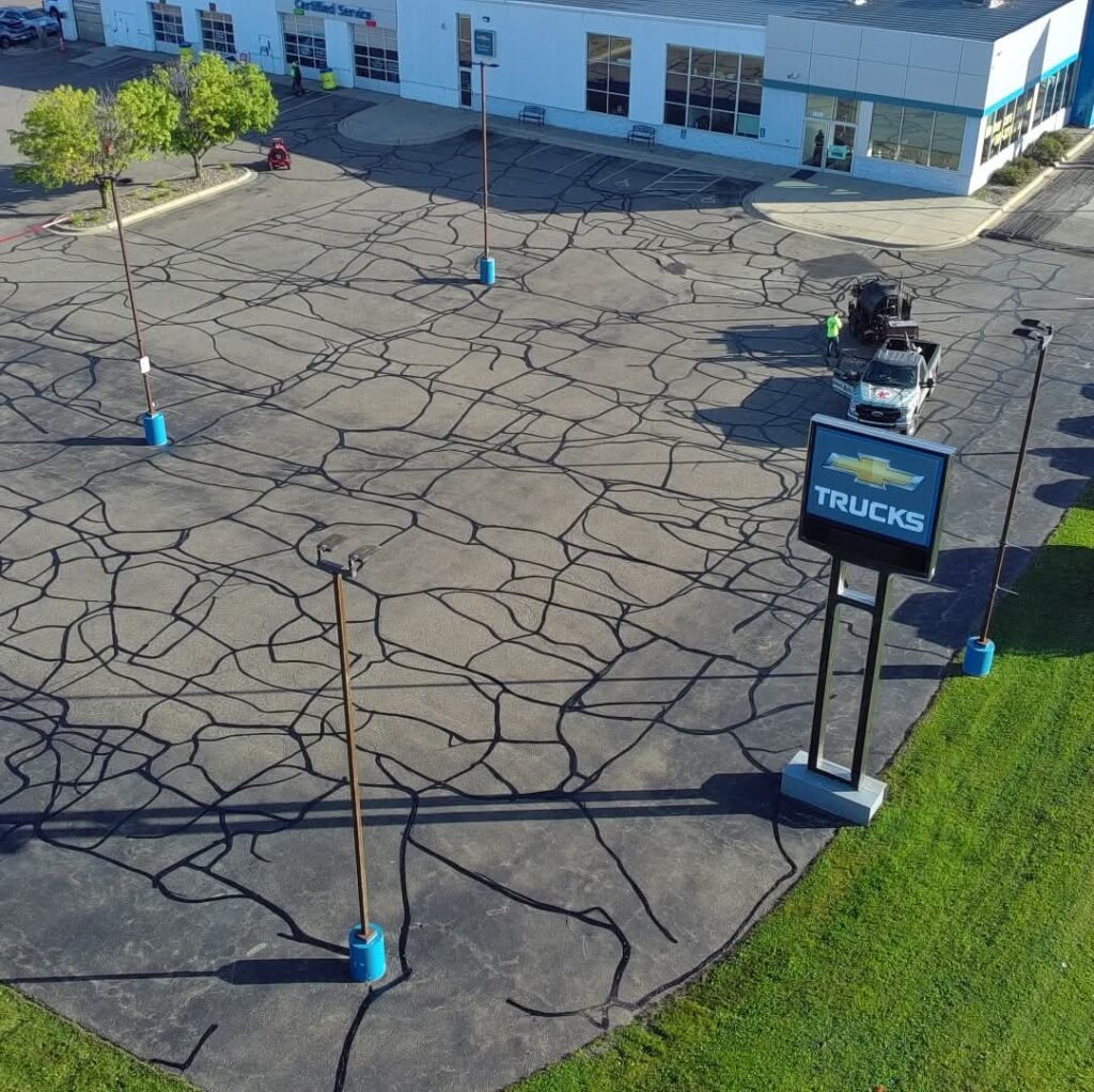 Cracks aren’t just cosmetic — water seeps in, freezes, expands, and worsens deterioration. Our professional crack sealing prevents potholes, extends pavement life, and saves you money.