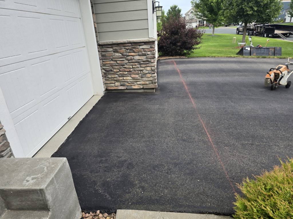 The asphalt apron — that critical transition between your driveway and garage floor — is the hardest-working section of your entire driveway. Every vehicle that enters or exits your garage rolls over this area, concentrating thousands of pounds of weight on a small surface multiple times per day. Add snow plow blades, water runoff from the garage roof, and Minnesota’s freeze/thaw cycles, and it’s no surprise that aprons fail faster than any other part of the driveway.